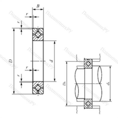 - Обладает более широкой зоной передачи усилий в сравнении с шарикоподшипниковыми аналогами, однако предназначен исключительно для работы с малыми скоростями вращения.