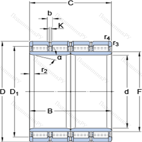Четырёхрядные цилиндрические роликоподшипники 314520 C