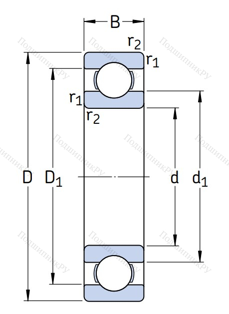 Однорядный шариковый подшипник 61808
