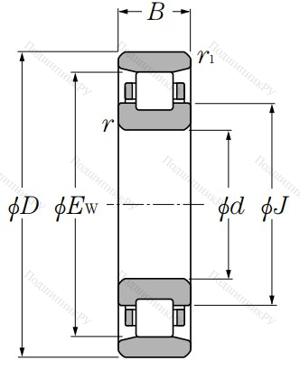 В зависимости от модификации подшипник имеет различную конструкцию: тип N рассмотрен выше, NJ – имеет уширенное внутреннее кольцо, NU – уширенное внешнее;