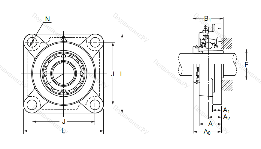 Ромбовидный корпус устройства предназначен для установки с использованием пары болтов в ограниченных пространствах. В зависимости от конкретной конструкции, может оснащаться внутренней обоймой со специальной закрепительной втулкой или стопорным винтом. Корпус изготавливается из стали, чугуна или иных материалов.